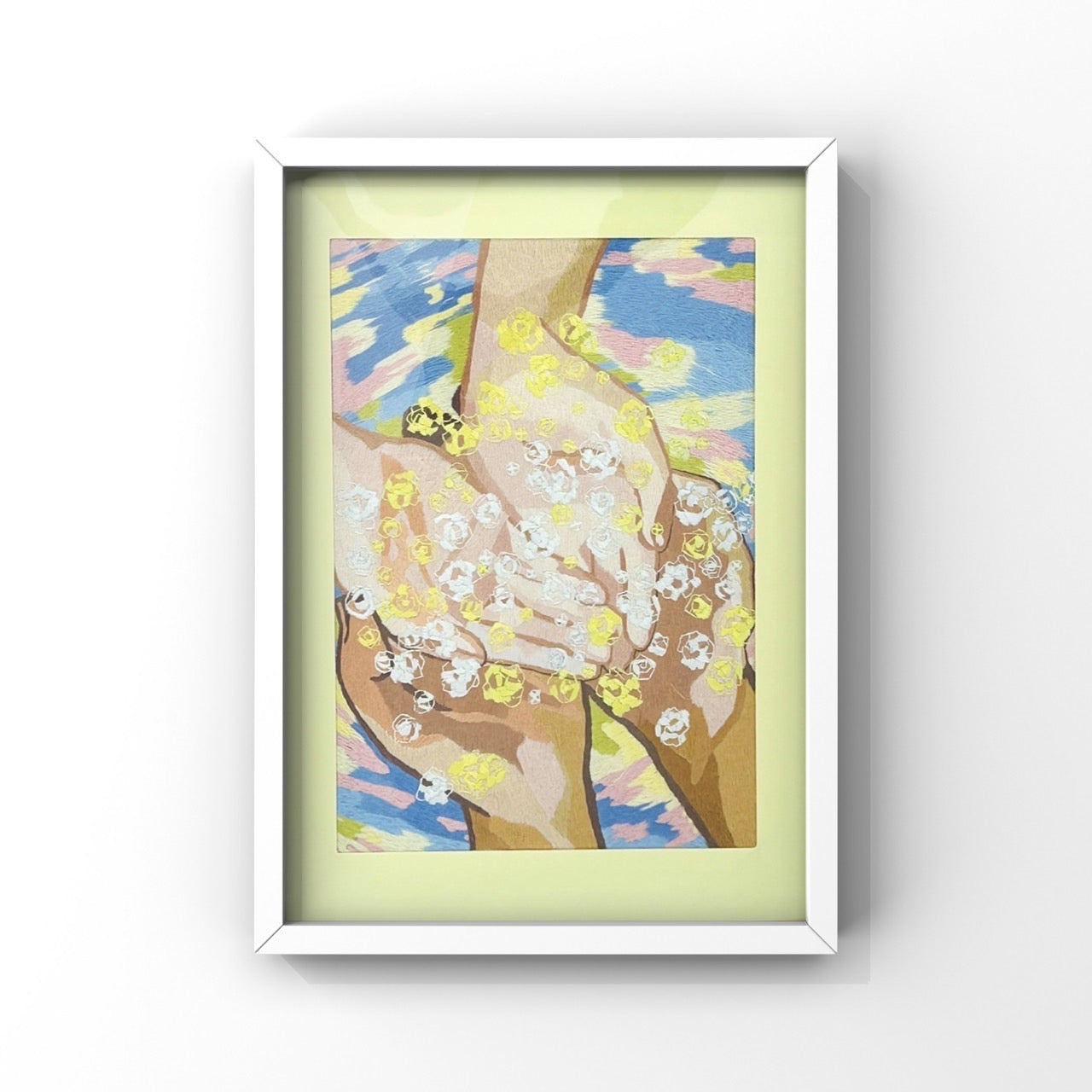 2人の手のひらから溢れ出す花々に希望を感じてもらえたらうれしいです