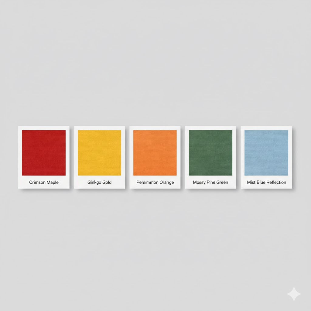 Please enjoy the vibrant hues of crimson and gold in this autumn foliage piece. I have carefully captured the brilliant transition of Japanese maple leaves as they transform the landscape into a masterpiece of natural color. I hope this piece brings the serene and breathtaking beauty of a crisp autumn day into your heart.